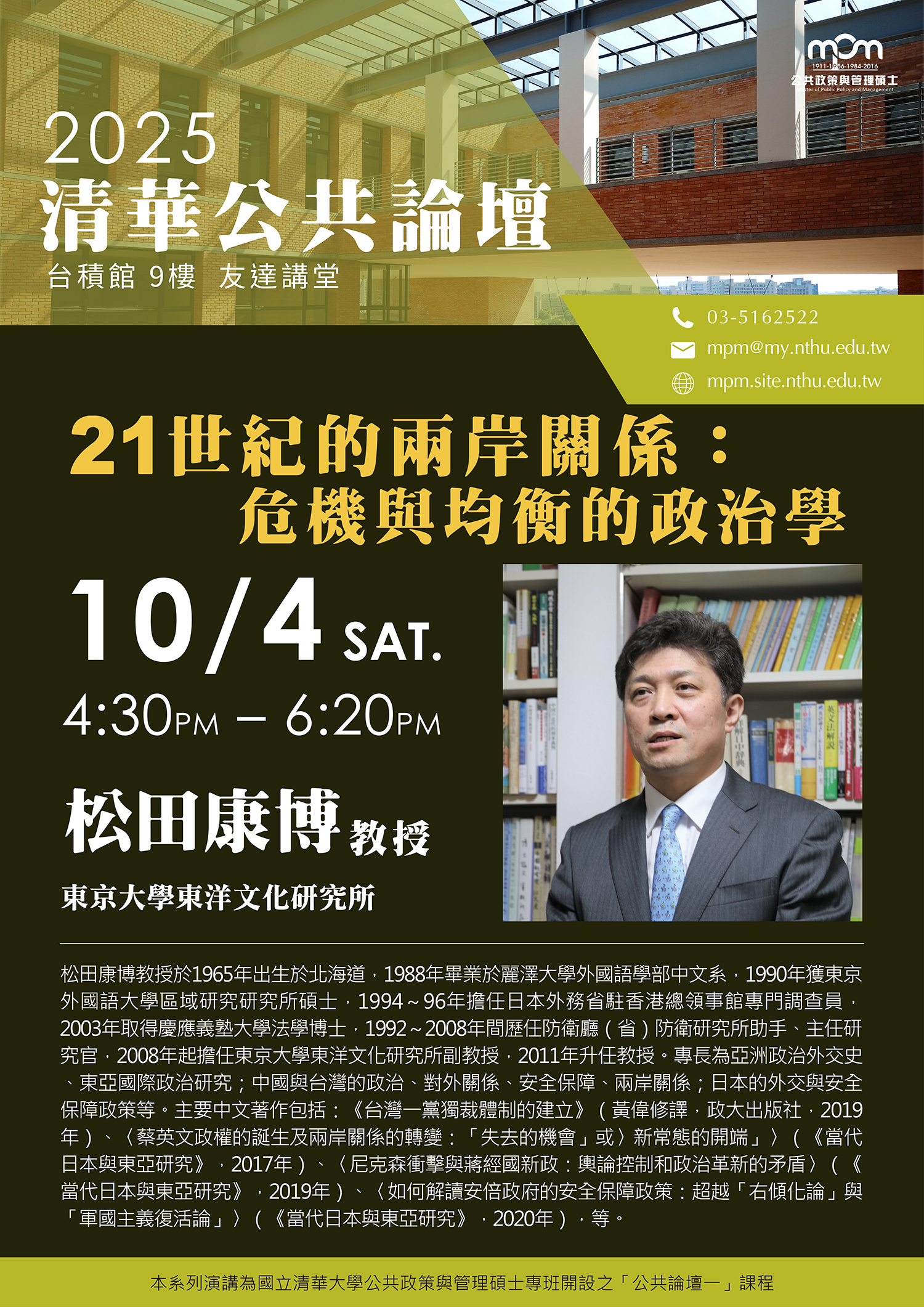 【公共論壇】東京大學東洋文化研究所 松田康博教授(11/1)