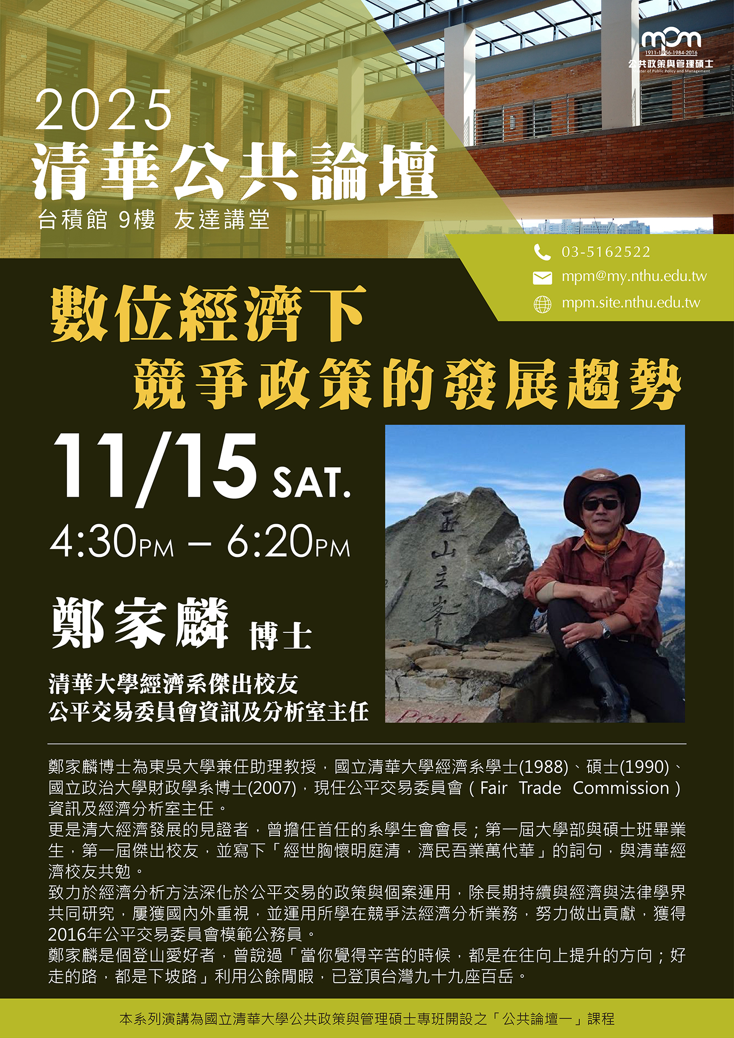 【公共論壇】公平交易委員會資訊及分析室主任 鄭家麟博士(11/15)